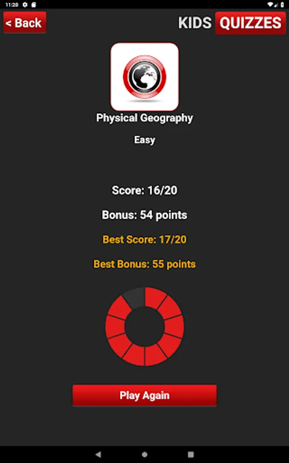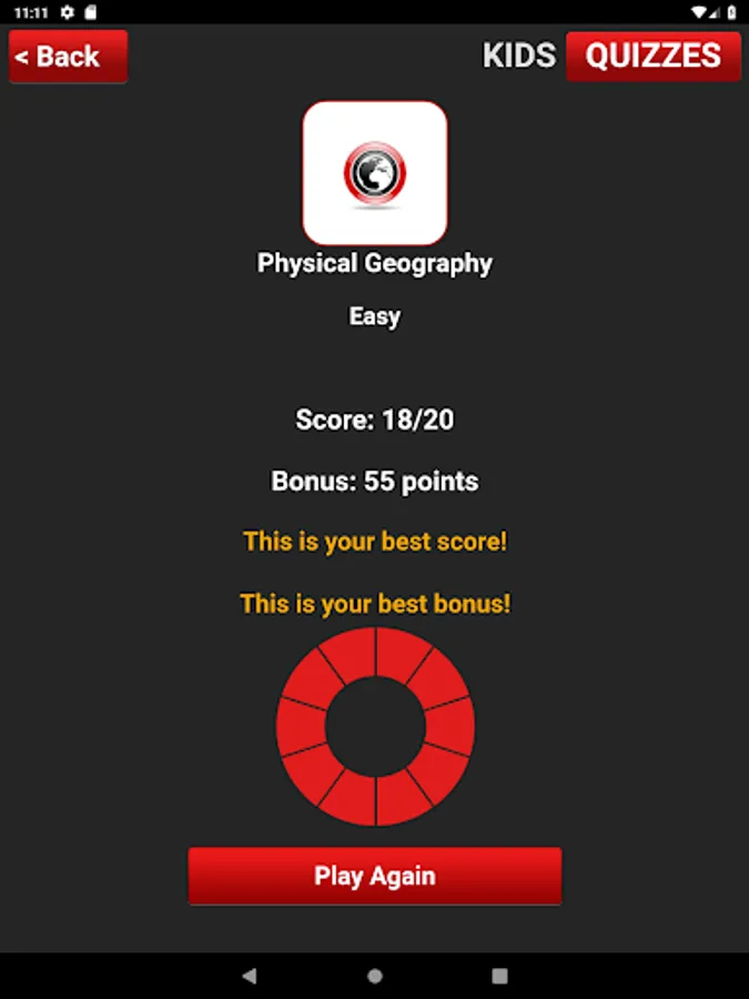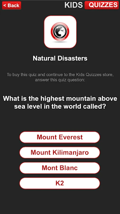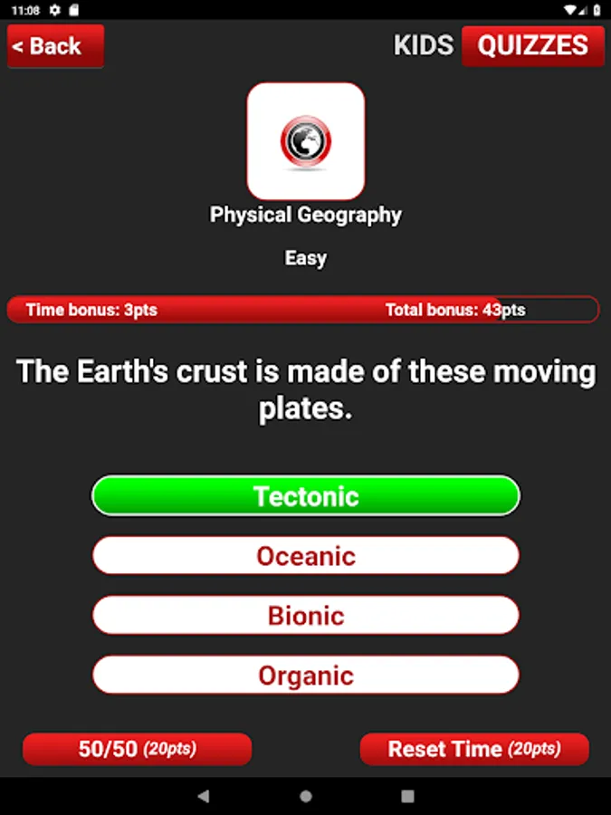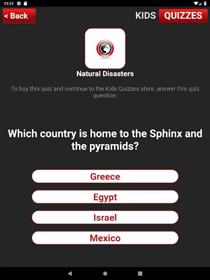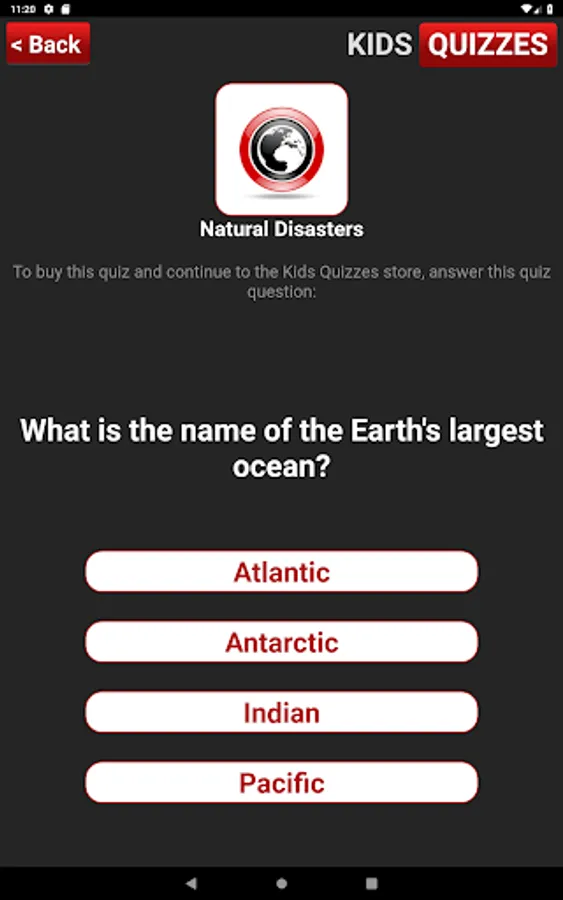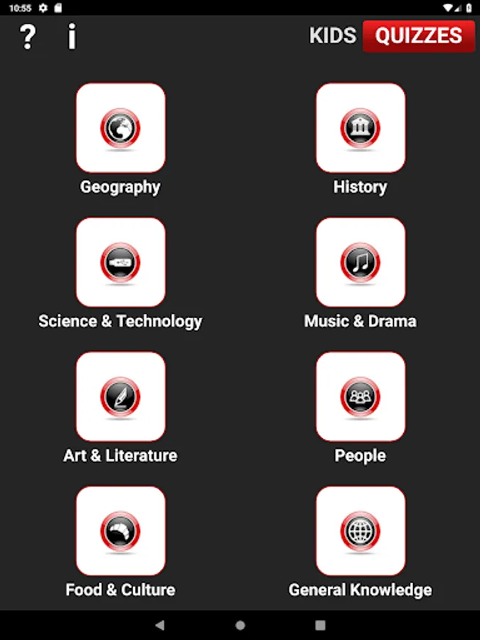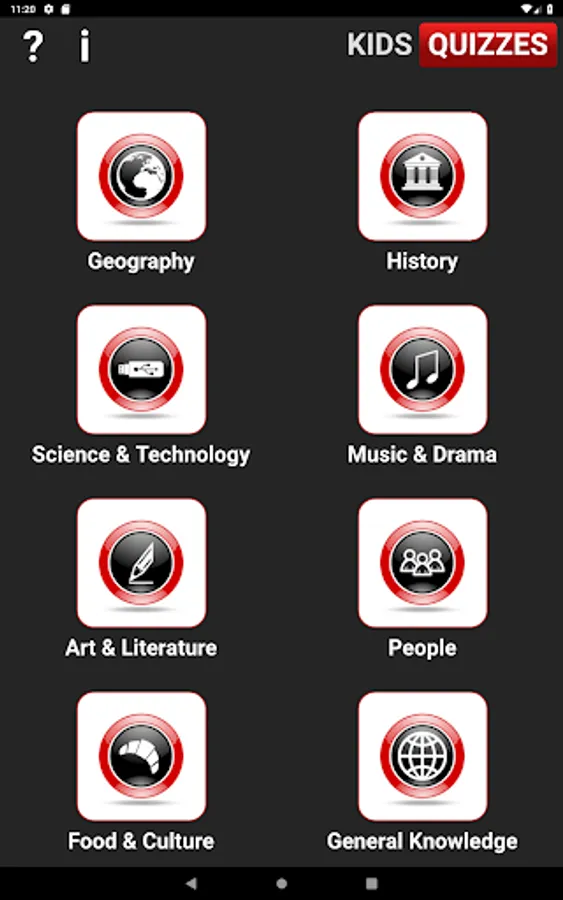 KidsQuizzes is a quiz app for children of school age. Each quiz category is designed to reflect subjects and topics taught at school. The quizzes available are curriculum-based. The app includes 20 quizzes at start-up and a general knowledge section. Further quizzes can be purchased.