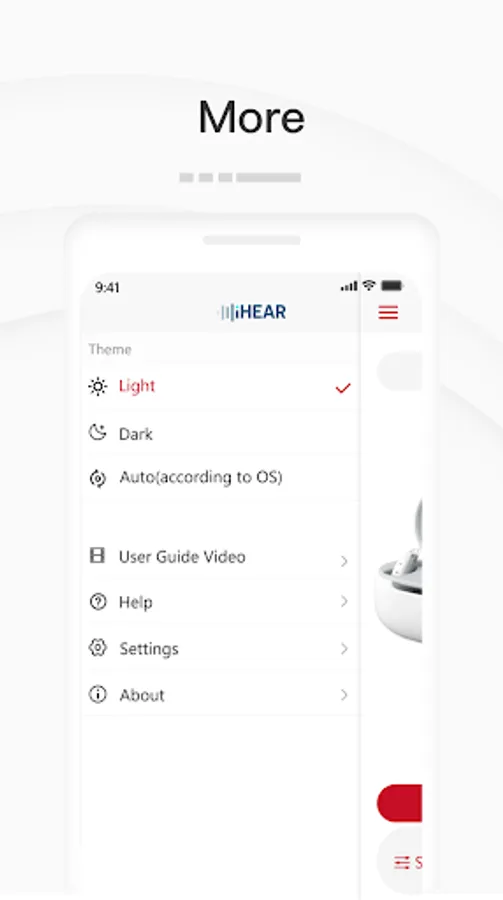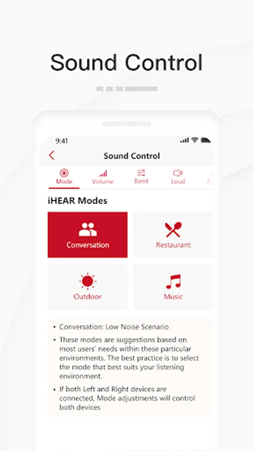 The APP controls the hearing aid's volume, switches modes, and tests your hearing.