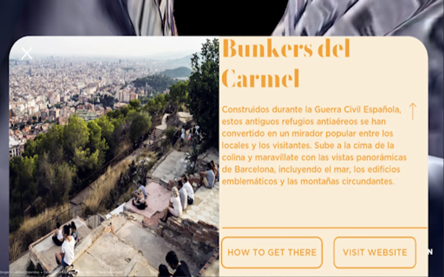 This application uses augmented reality to indicate the points of interest in Barcelona from the roof of the Yurbban Trafalgar Hotel. You can find information of interest from different areas as well as directions to get there.