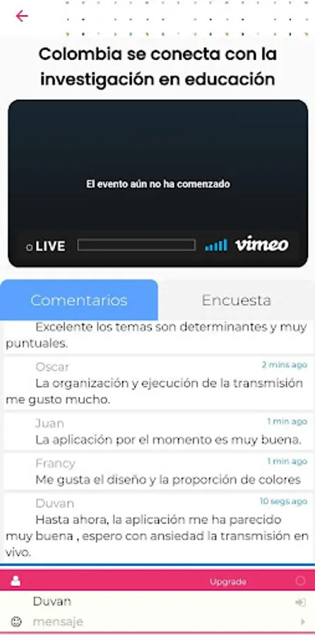 The user will be able to deal with issues related to the quality of education, find live broadcasts that will allow them to interact with the event, can download documentation of interest, follow the event agenda, enjoy virtual talks, view interactive video posters and share relevant information on their social networks.