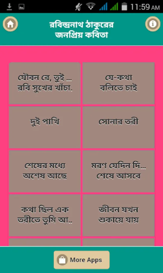 Bengali Rabindra Nath who loves poetry could not be found. In this app you'll find the popular poetry of Rabindra Nath buffs to make poetry more.