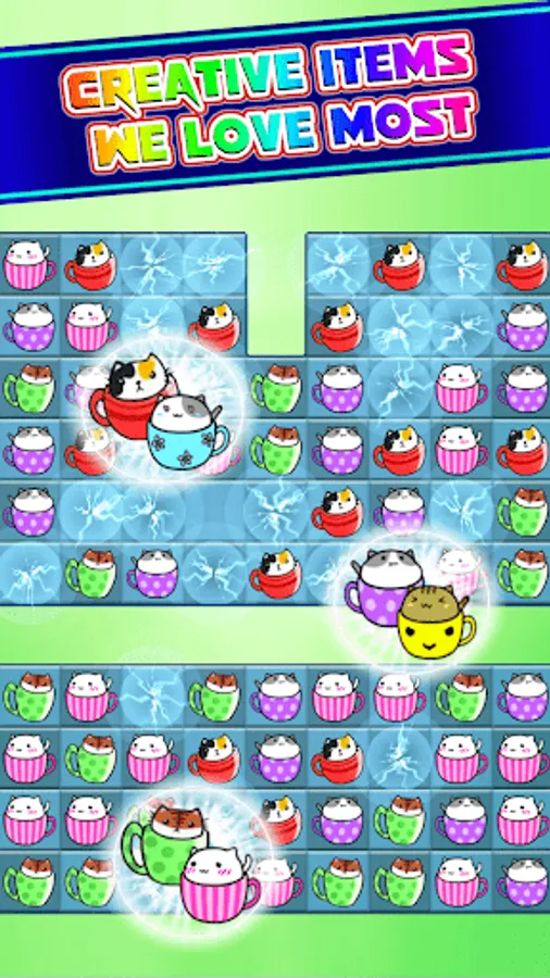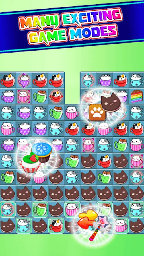 Match 3 or more cute cat coffee items to get score, collect items, clean blocks...