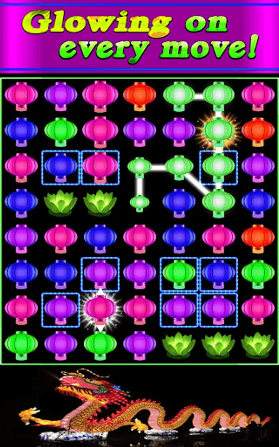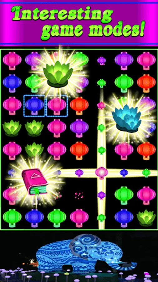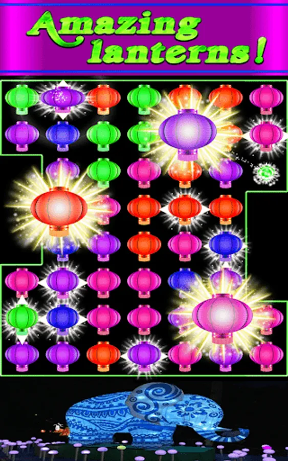 Link 3 or more lanterns to make them glowing to get scores, collect lanterns, clean blocks...