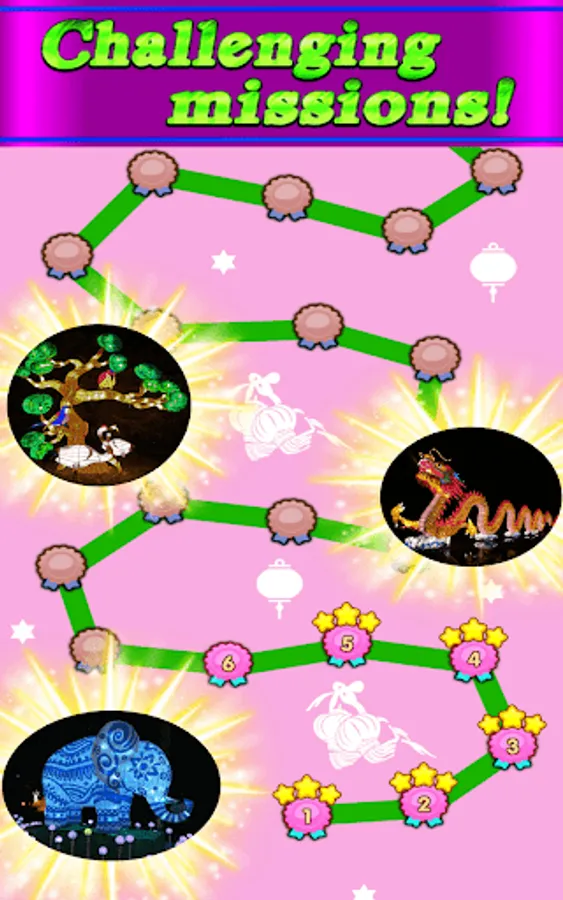 Exciting games modes: collect required lanterns, earn stars, clean blocks, destroy bombs...
