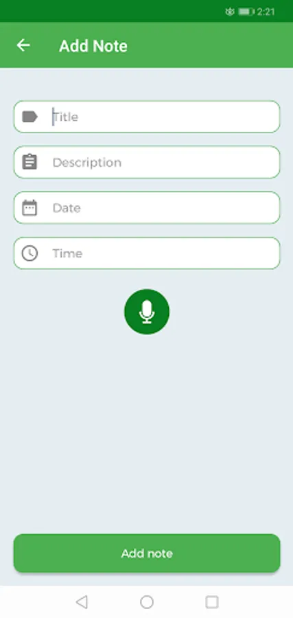 After you set the alarm date and time you can either write a description or record a voice note or both.