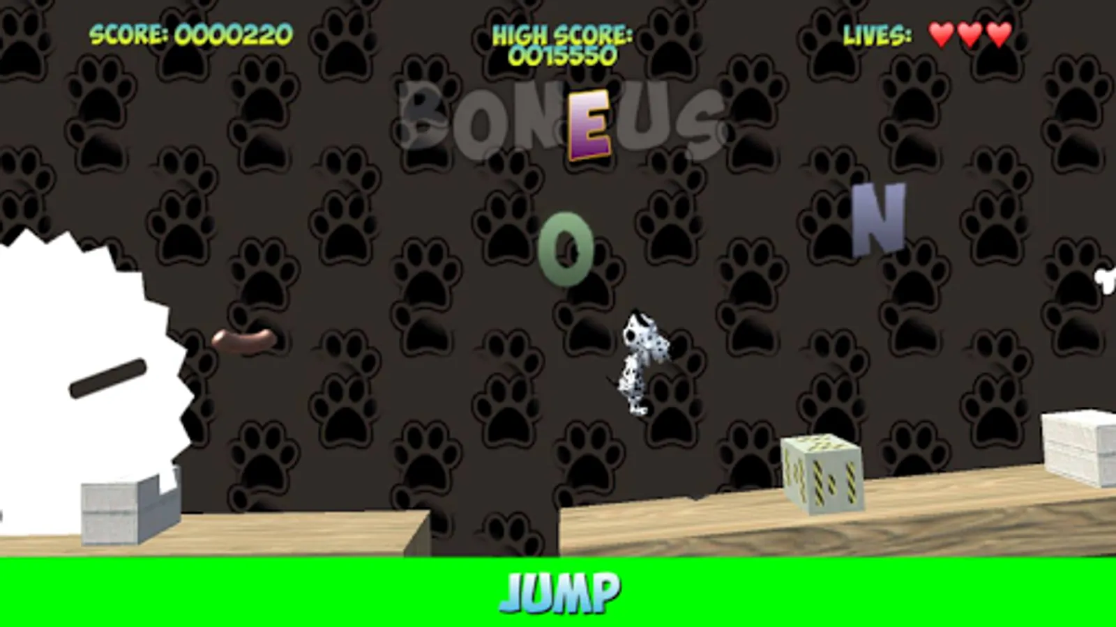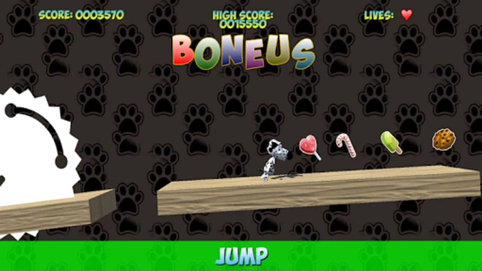 Tap the screen to make Spot jump from plank to plank, and to collect points.