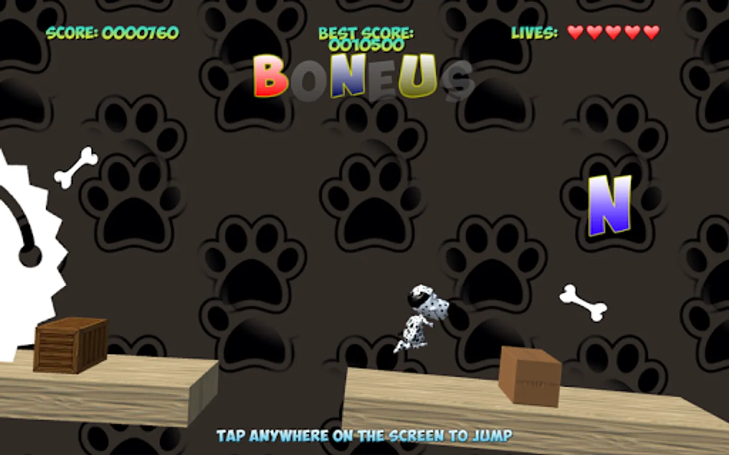Tap the screen to help Spot get from plank to plank, and to collect points.