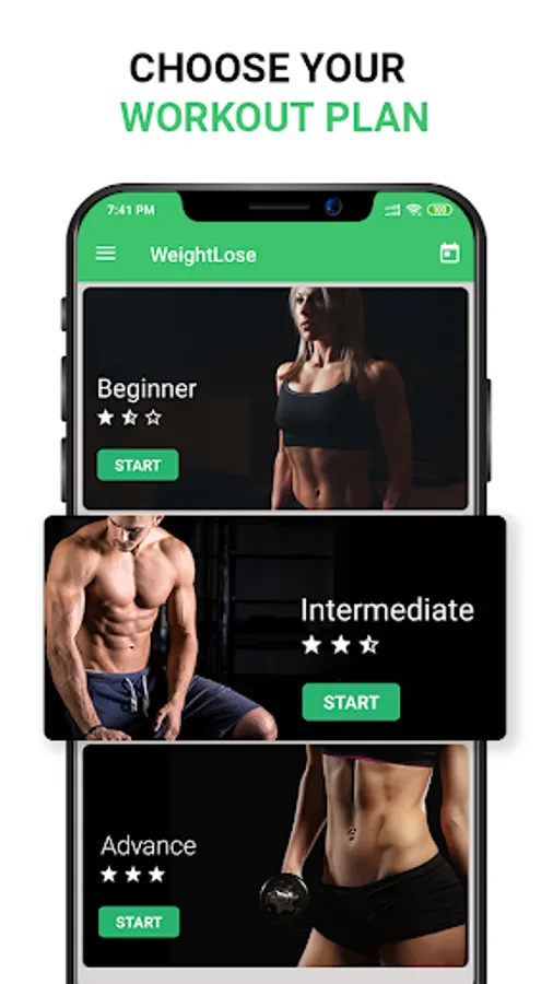 - Abs workout exercise with 3 difficulty levels (Beginner, Intermediate, Advanced) designed by experts.