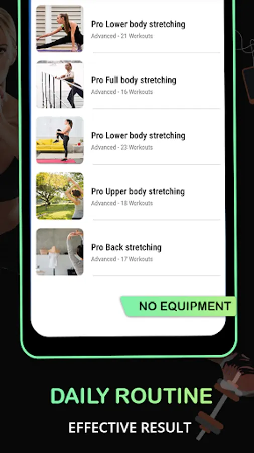 What could be better than a charge of vivacity and energy in the morning? Just do a workout and see how your health gets better and better every morning. Also, the morning flexible workout has a great influence on mood throughout the day and overall vitality. Flexibility training for beginners, for gymnastics, for men and women has 3 different programs and over 50 different workouts during which you can do the full-body training.