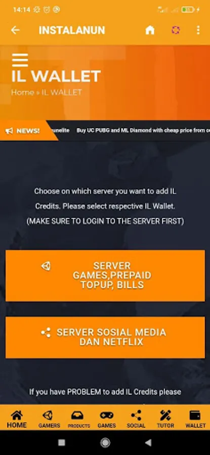 Di instalanun, anda boleh membeli pelbagai servis termasuk Games Point (Mobile Legend, PUBG, Free Fire dan Lain-lain), membeli Top-Up Phone (Prepaid Reload), Bayar Bill anda dan Beli servis Sosial Media.
