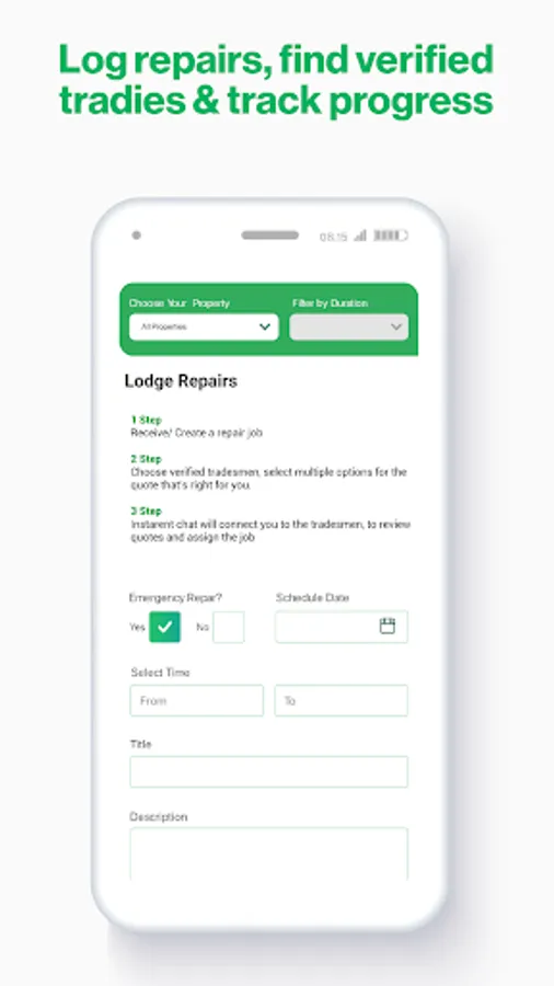Raise repairs and track progress via tenant dashboard.