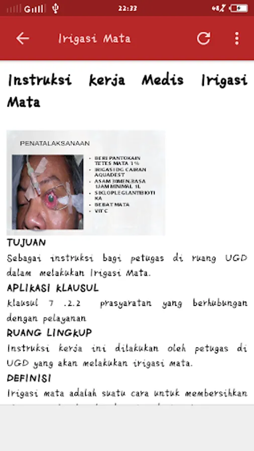 This application covers the work instructions for the medical and para-medical, which meet the syntax ISO. as a medic with its main function is to provide medical care to patients with the best possible quality, using procedures and techniques based on medical science and ethics and accountability. it is necessary to correct work instructions.