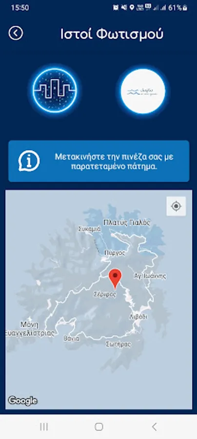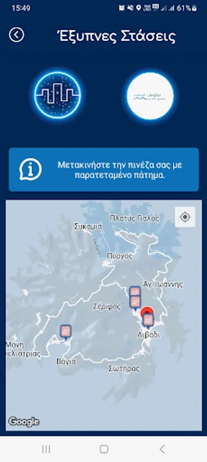 CityPoints is available for free to smart device users. Citizens can install the application on their device and use it in order to display the imprint points of the Municipality of Serifos on a map, using the Intelligent City subsystem.