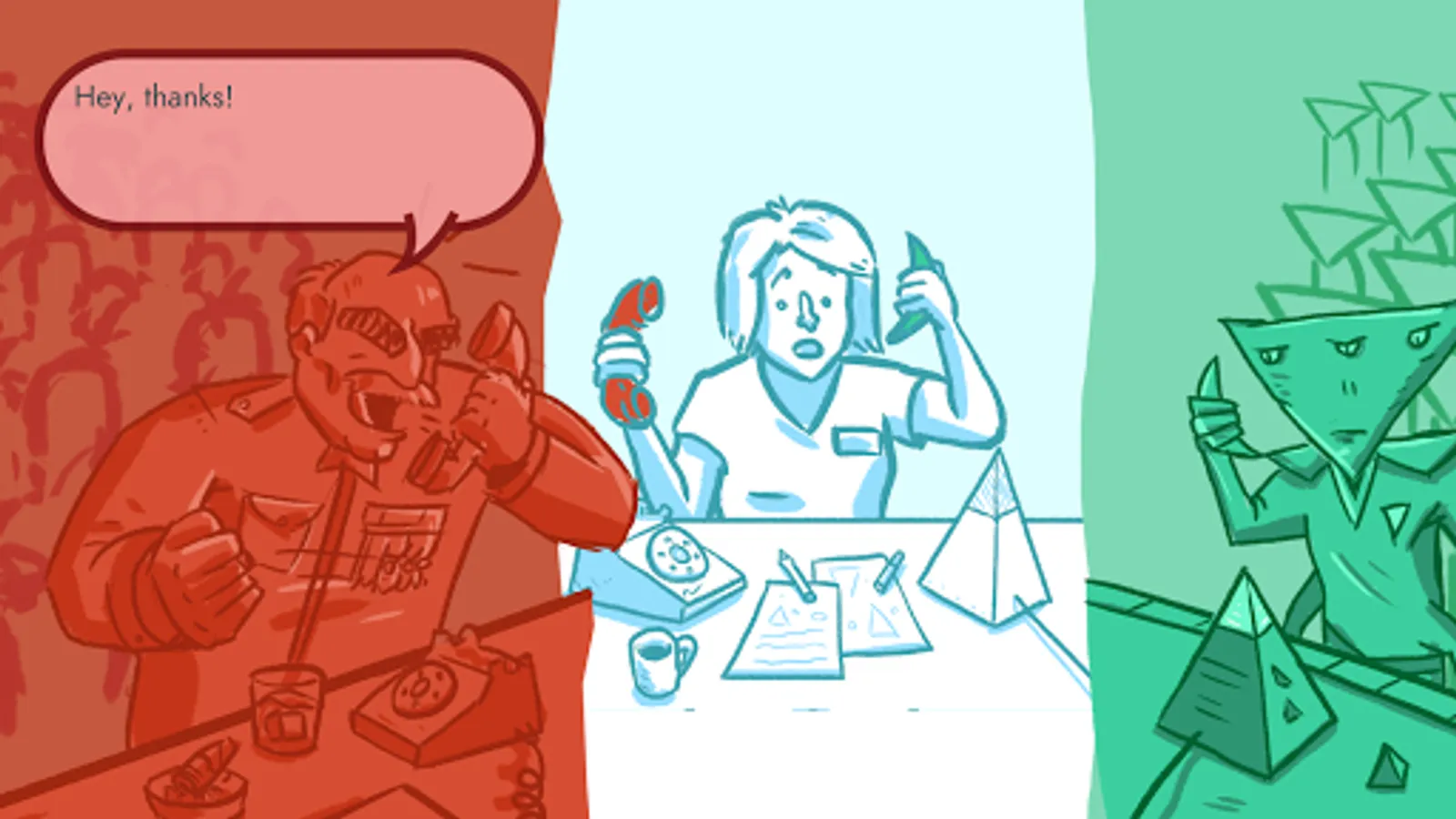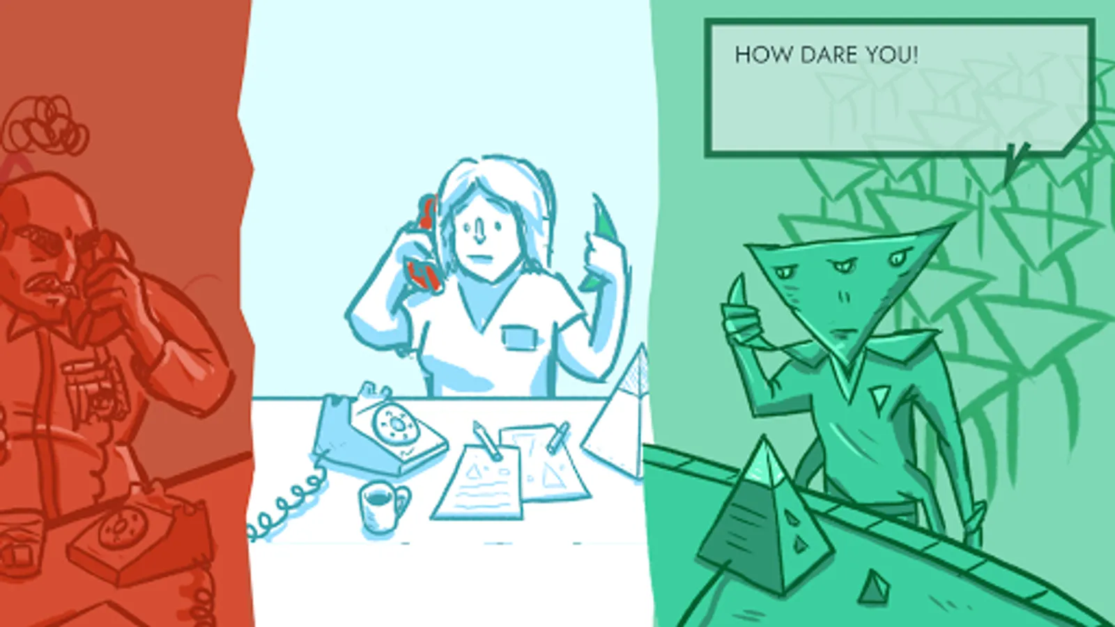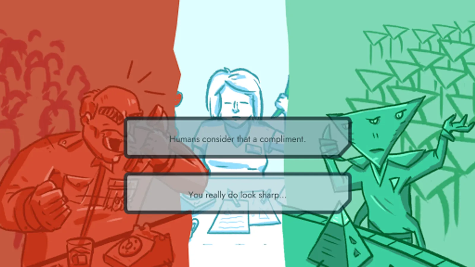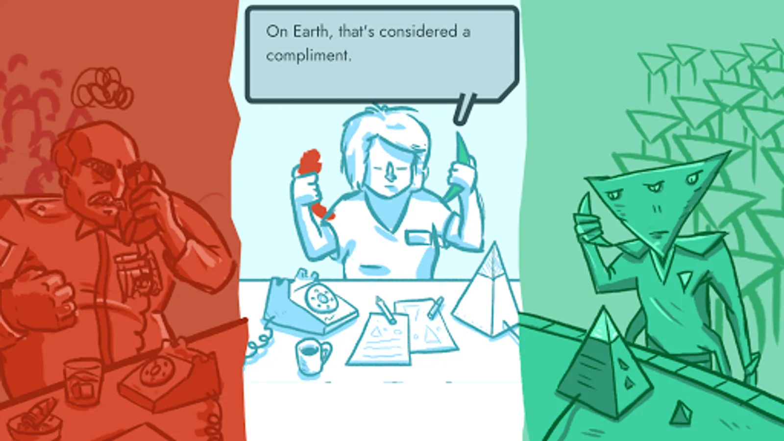 Greetings agent. Your mission is to help mediate between the President of the Earth Federation and the leader of the Triangulans in their peace talks. War must be avoided at all costs. The fate of humanity rests on your shoulders!