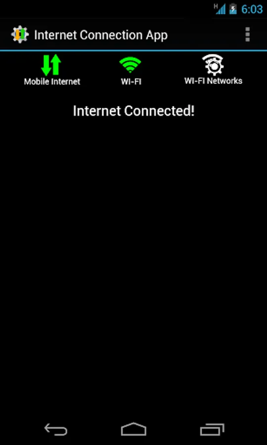 this app allows you to check internet connection :wifi, network data and available wifi networks.