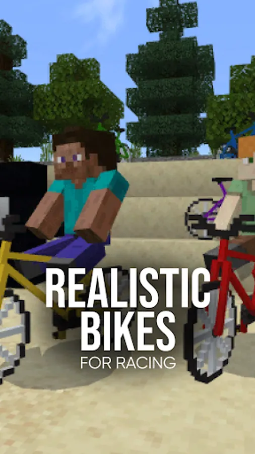 Mountain bike for Minecraft bring to your world very detailed motorbikes that you use for races, mountain rides and just travel to cover distances faster. The Mod sport bike for MCPE can be combined with our other additions so you enjoy a full Mincraft game. Motor bike mod for Minecraft help you get through your daily tasks faster, for example, you'll be able to get to the mine or your friend's house faster.