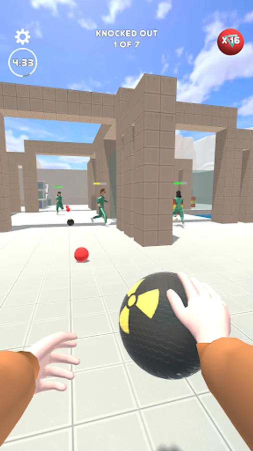You have to knock out all your opponents throwing the balls. You are the hunter. Your opponents will try to escape. You have balls’ limit and time limit to win the maps. If you knock down all opponents, you won. If they escape you lose.