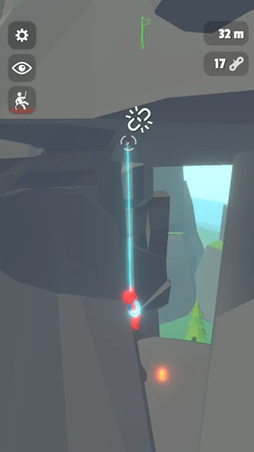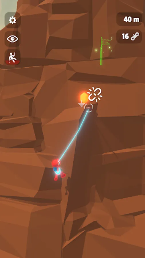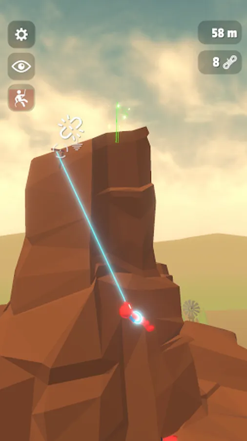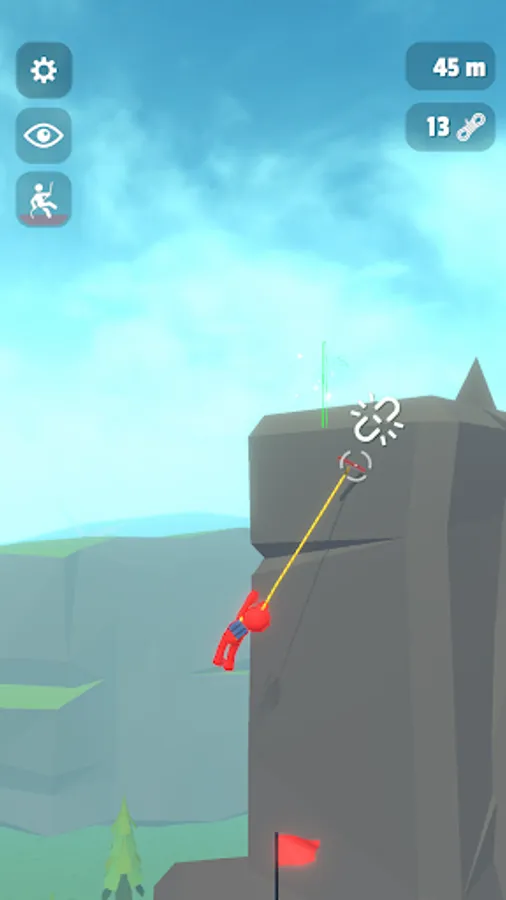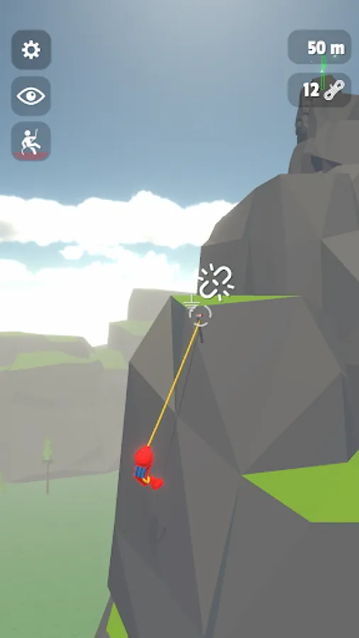 Tap to launch your hook. Move freely on the 3D environment. Your objective is reach the top of the mountains and peaks.