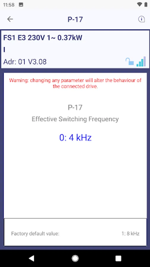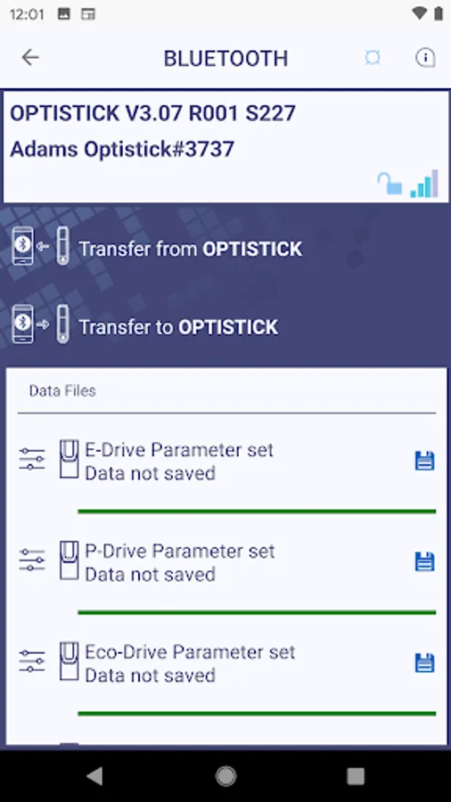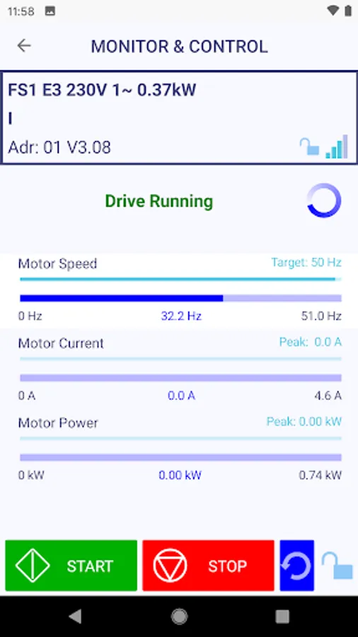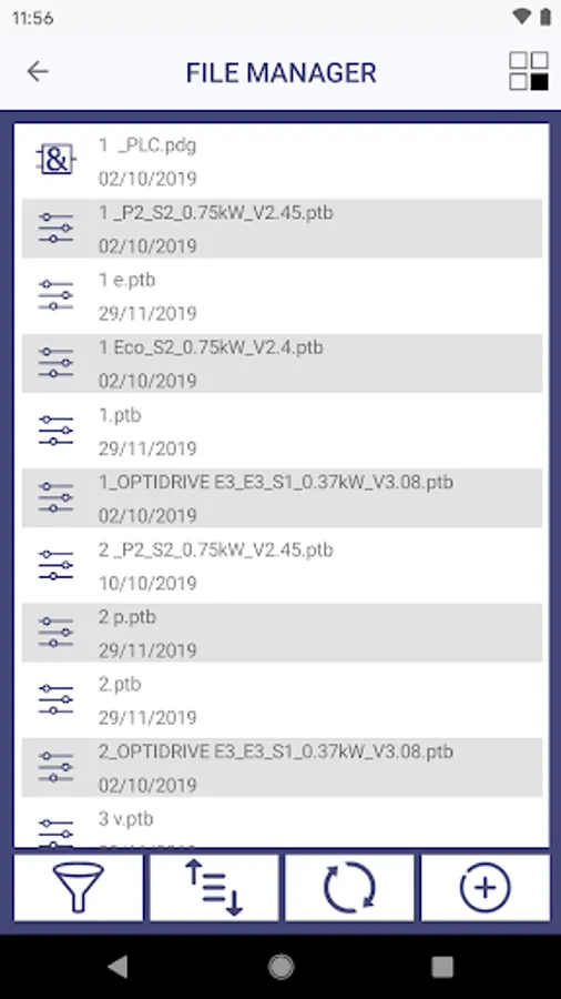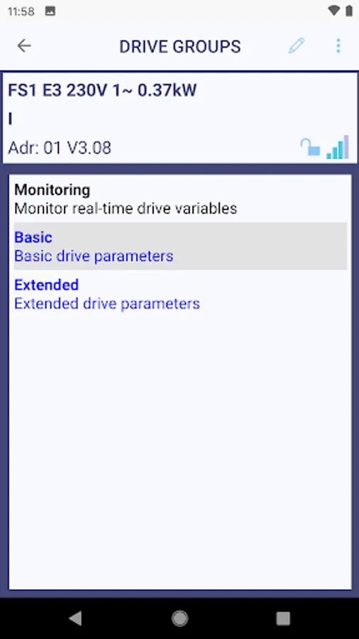 Monitor and Edit individual Optidrive parameters in real-time or transfer complete parameter sets between an Optidrive and the Smartphone.