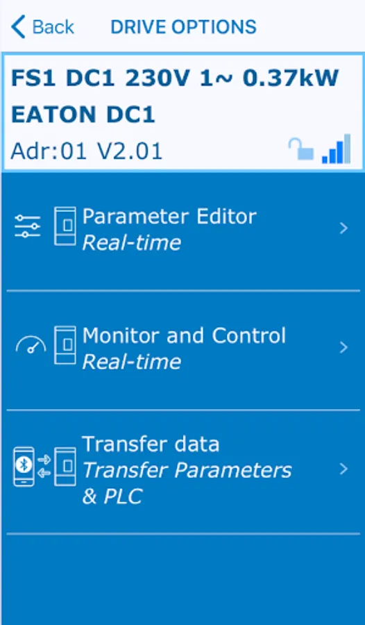 drivesConnect mobile is an intuitive and easy-to-use App which provides wireless configuration and monitoring of the PowerXL product range in conjunction with the DX-COM-STICK3-KIT (Article number 197586).