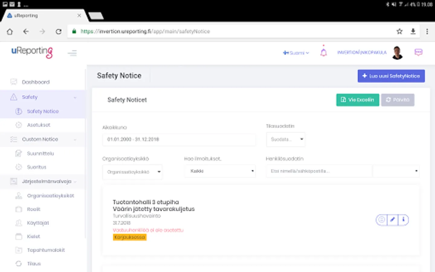 uReporting is Invertion Oy has developed a comprehensive tool-making organization filings in a mobile environment.