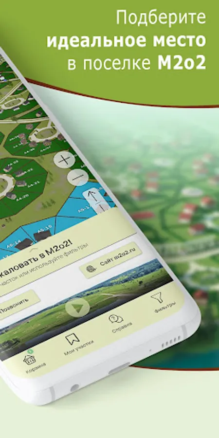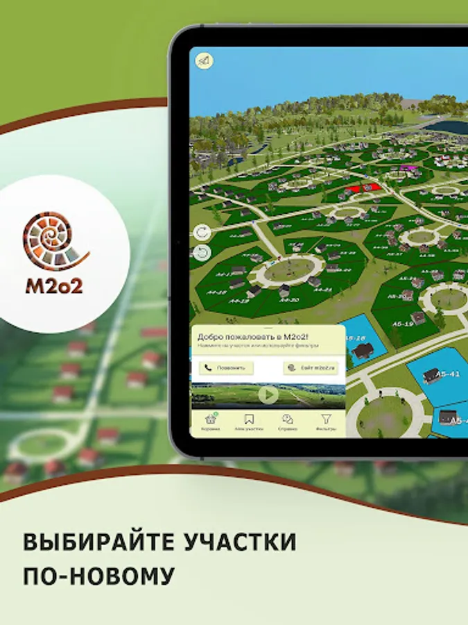 The application is free. With it, you can leave a request for booking a plot or observe the development of the M2o2 - m2o2 project.
