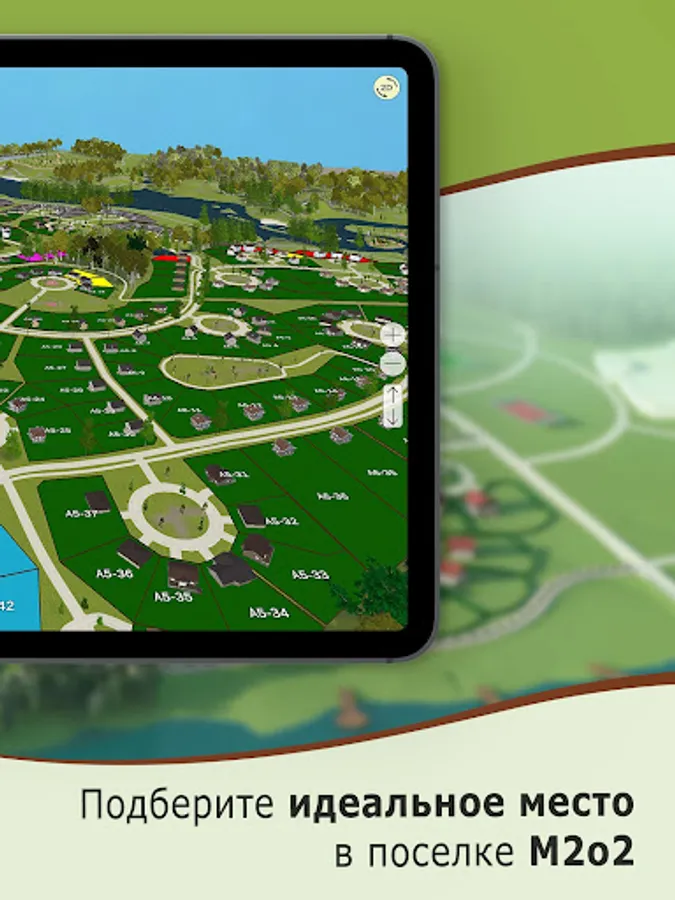 The application will help you to explore the village of M2o2 in its final form. You will be able to see park areas, recreation places and the surroundings of your site. In the application, the M2o2 territory is filled with virtual life.