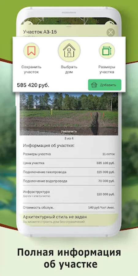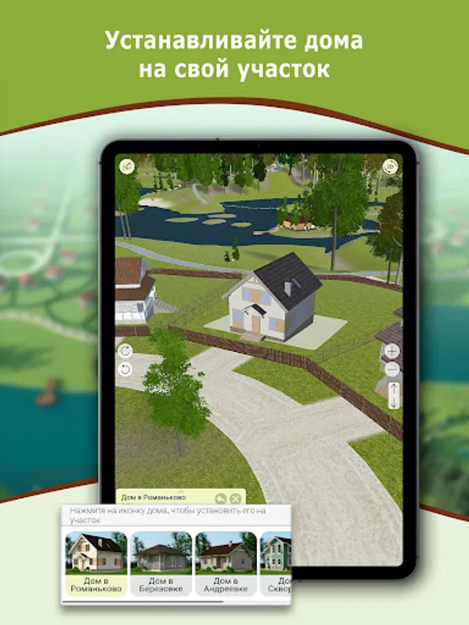 You can place houses on the selected site from the catalog of projects of our partners. After purchasing the site and approving the design of your house, we create its model and place it in the application. Your future neighbors will be able to see what your house is, which will help them to observe the architectural style of the sector.
