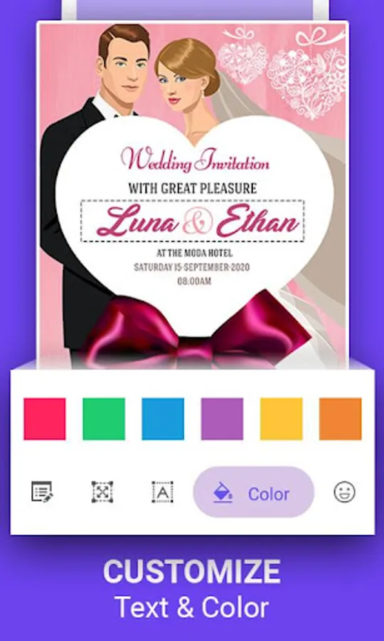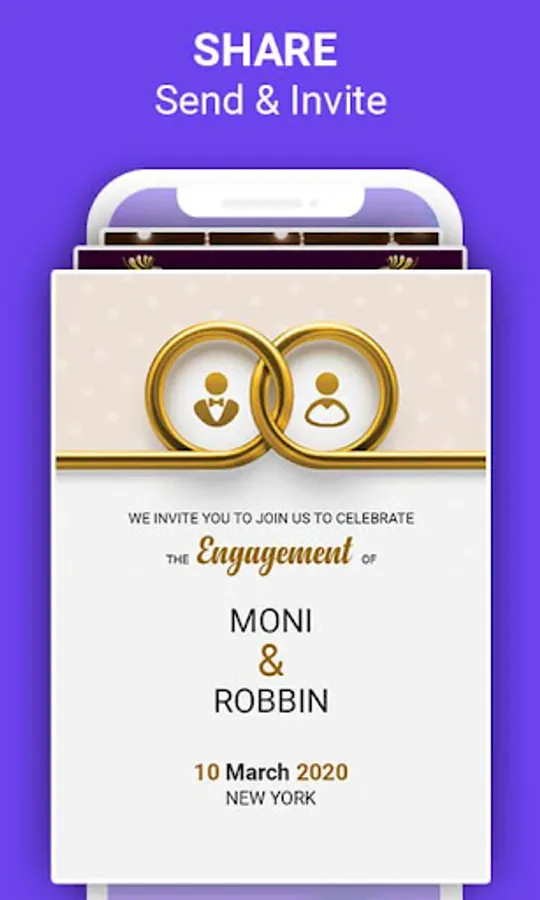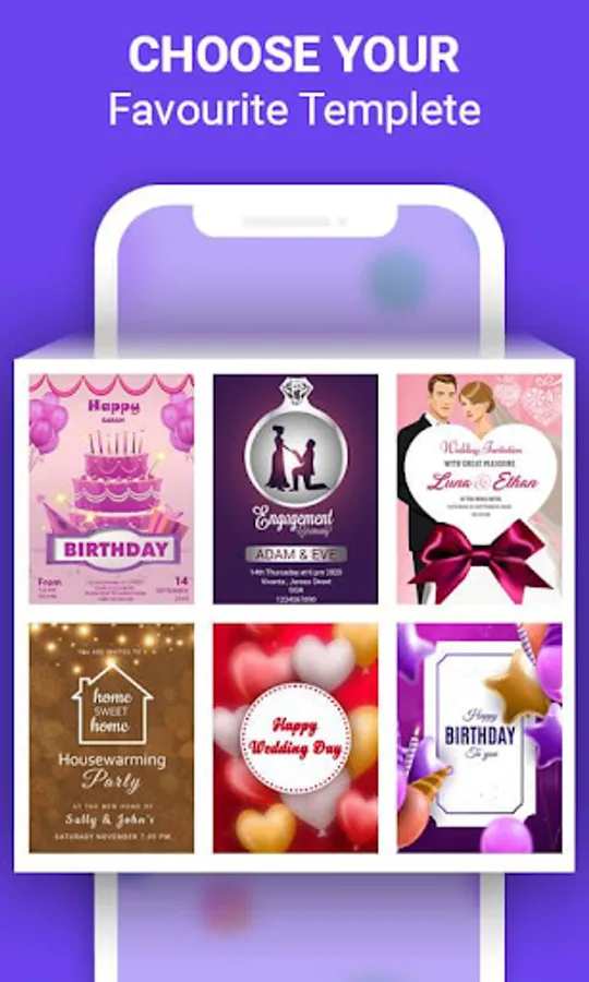 Invitation Card Maker & Ecards Invites App gives you multiple design options to create your own personalized Invitation Cards.