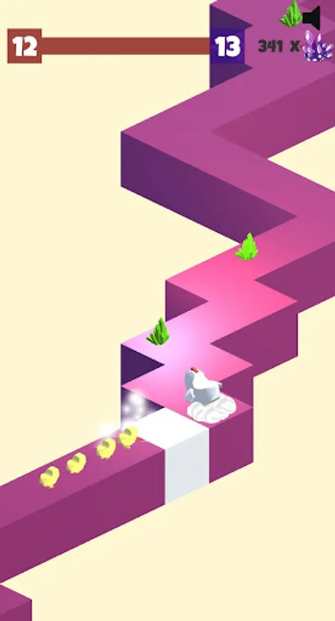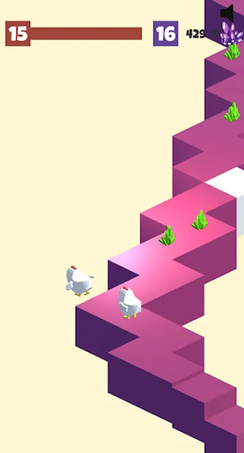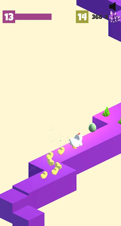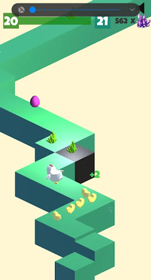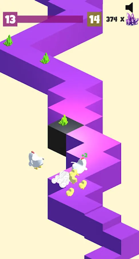 Collect grass to feed your chicken, and hatch new chicks from the eggs. Chicks could automatically turn into chicken moms when the leader falls down and lead your chicky cluster along the zig zag path.
