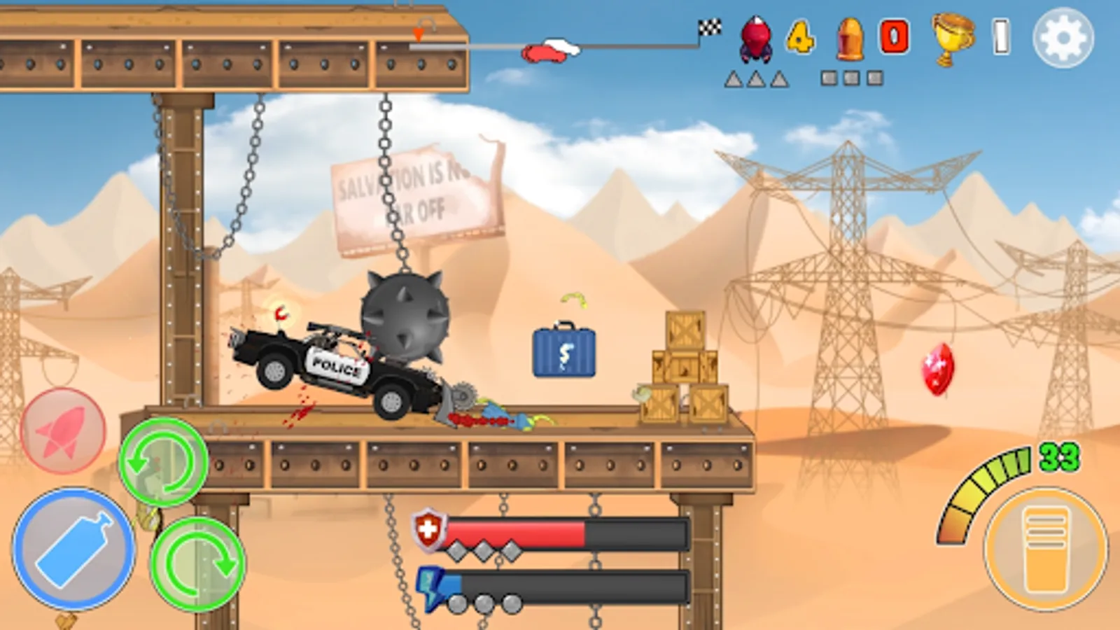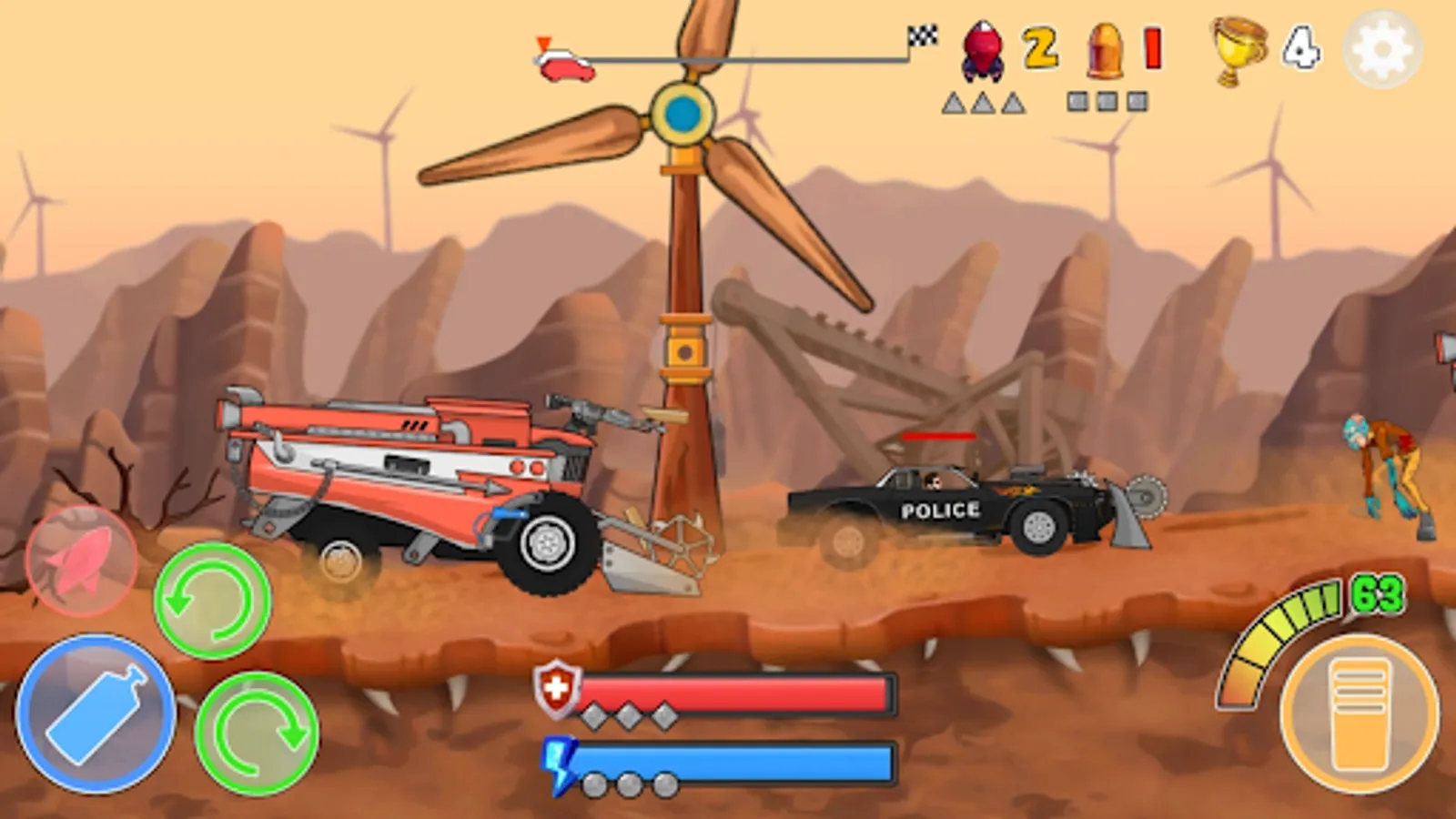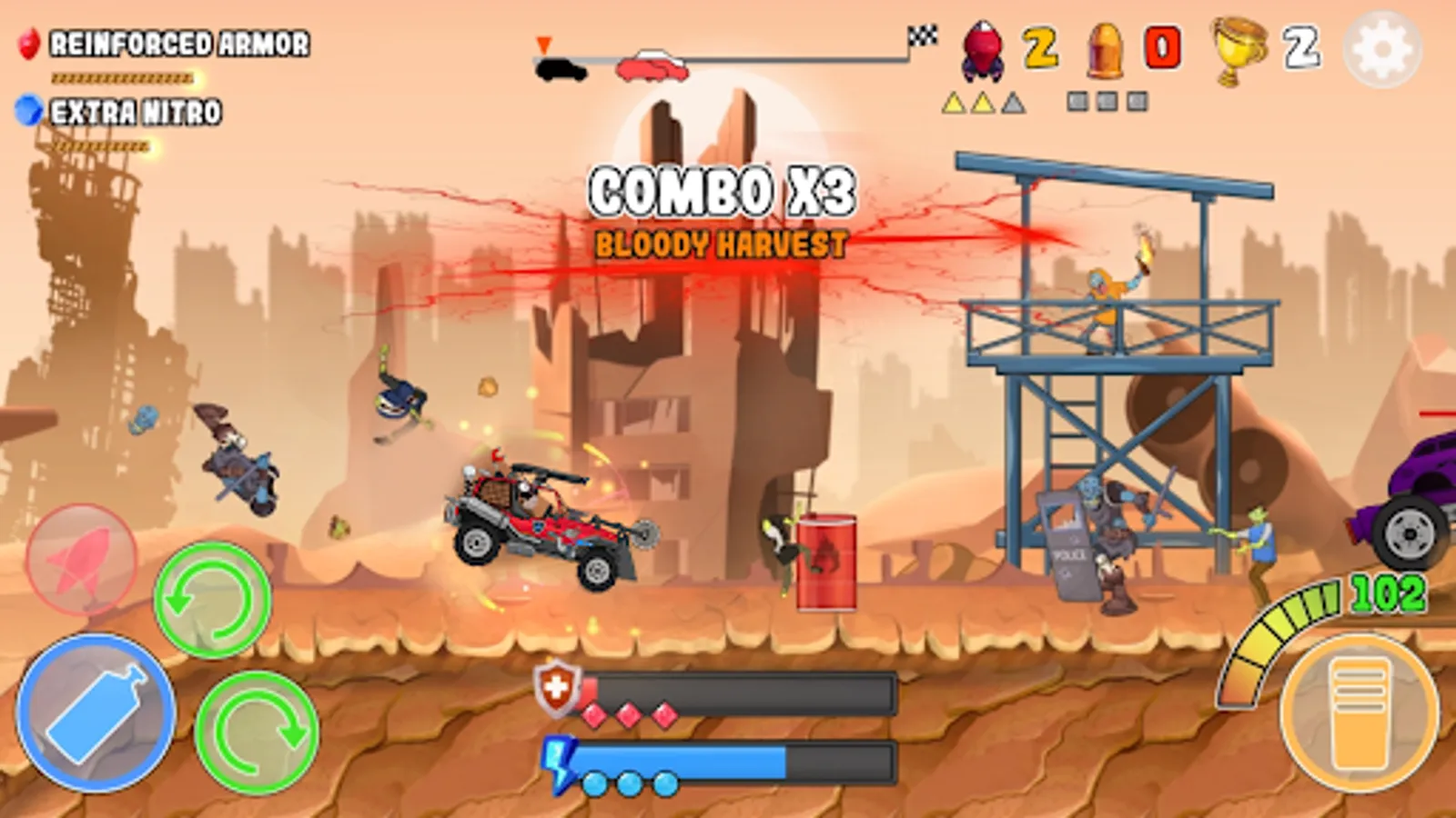 Smash into the trash various obstacles that you meet on your way, because there will be no turning back, and the only chance to survive is to kill zombies and not die. Rush through the hills and ruined roads in a post-apocalyptic world, survive among the living dead, fly over obstacles, shoot down zombies that get out into the sunlight, earn to upgrade your zombie cars in zombie racing and unlock better cars, because the road will become more difficult, the hills are steeper, the obstacles are more insidious, and the sun will soon set. And then crowds of zombie monsters will flood the roads, and car racing will turn into a mess of corpses.