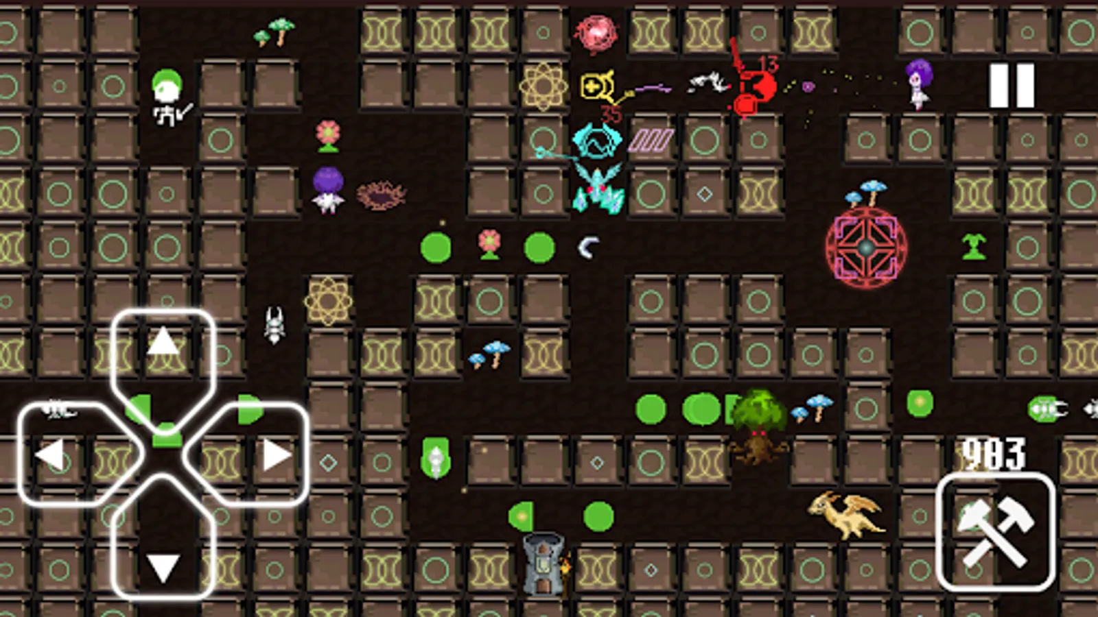 Build dungeons by digging blocks with a pickaxe. Defenders are spawned when you dig blocks hold energy.