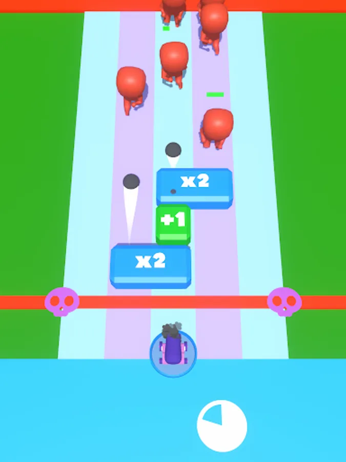Use factor gates to multiply or aim your projectiles on the waves of enemies!