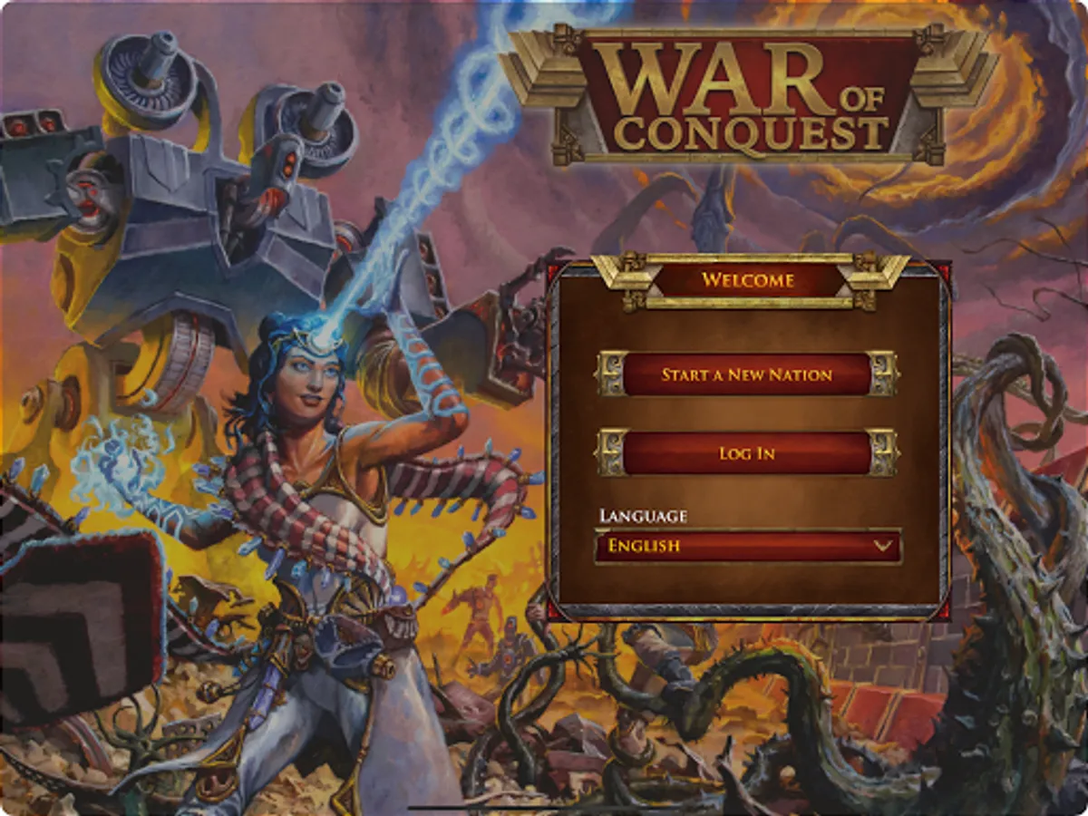 War of Conquest will place you in a single, wide-open world with thousands of other players, to develop your nation, compete for resources, and seek to capture the mysterious Orbs of Power. Along the way you'll be able to choose from a huge variety of technological and magical advances, forge alliances and rivalries, and become part of a community.