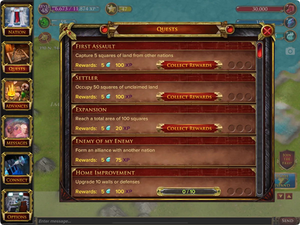 In addition to its holdings on the mainland, each nation also has a home island. Nations can earn XP and more by defending their home island and raiding other nations' islands, in a one-on-one matchmaking mode that is geared toward casual and solo players.