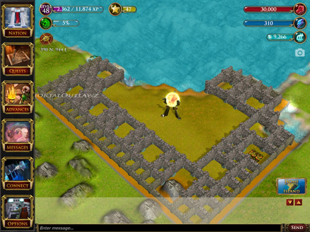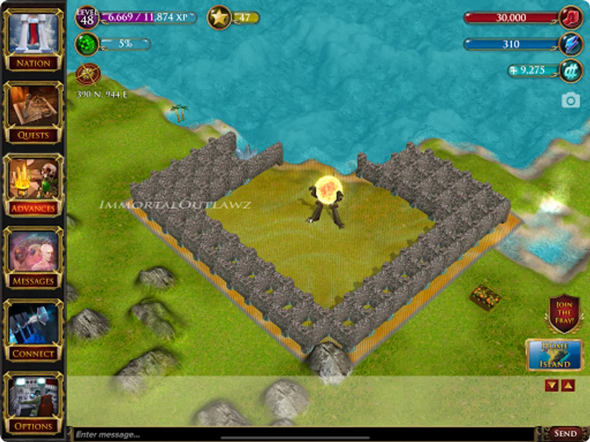 Imagine open-world tower defense real-time strategy. This game is about founding a nation, developing its resources and abilities, and clashing with other nations over land and treasure. It is massively multiplayer, allowing thousands of players’ nations to occupy the same game world. All nations in War of Conquest co-exist on a single huge game map. To expand your nation or move it from one place to another means going around—or through—your neighbors.