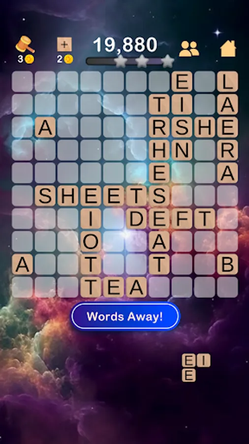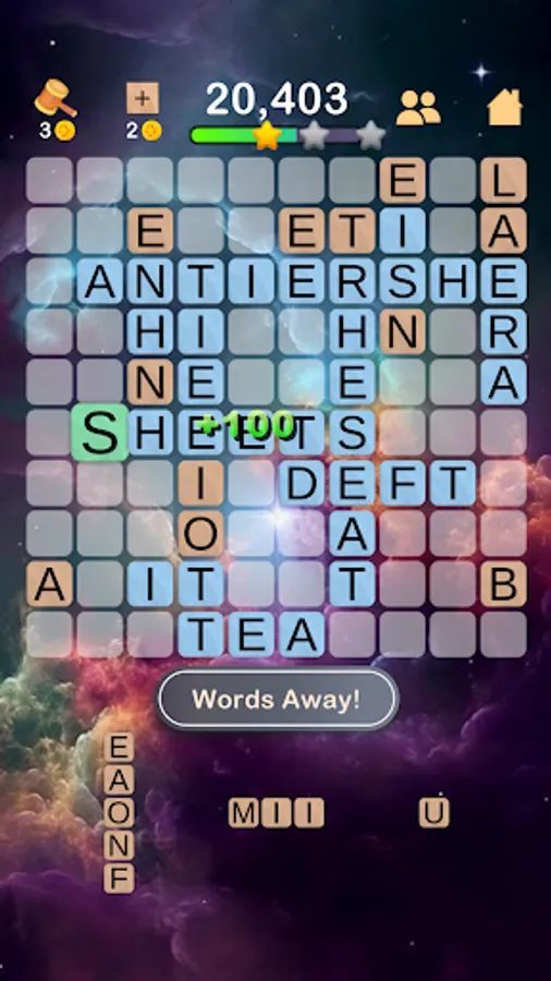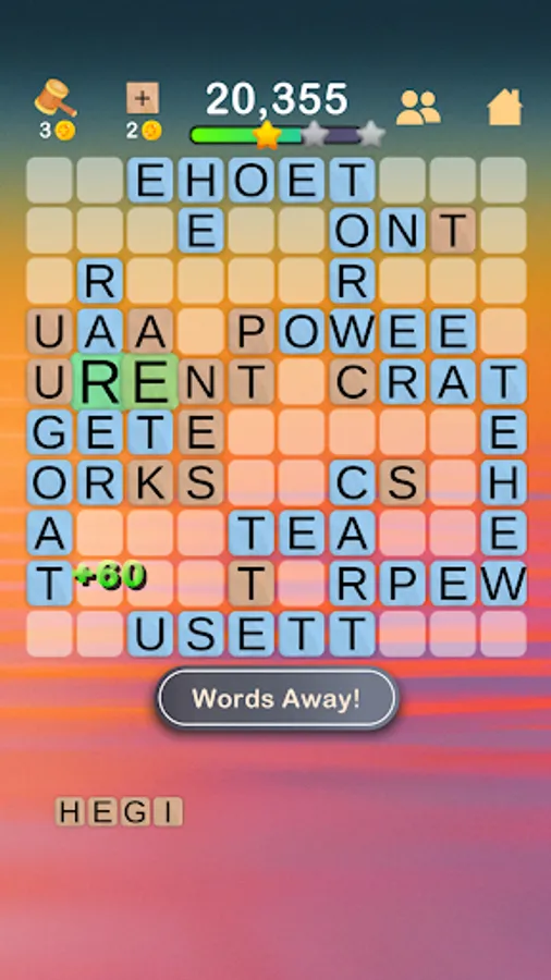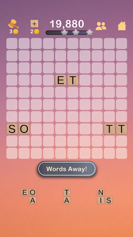 Hit the Words Away! button to wipe the words you’ve made off the board and trade them in for letters. Or, hold off to try to make longer words. Strategize to build the best words!