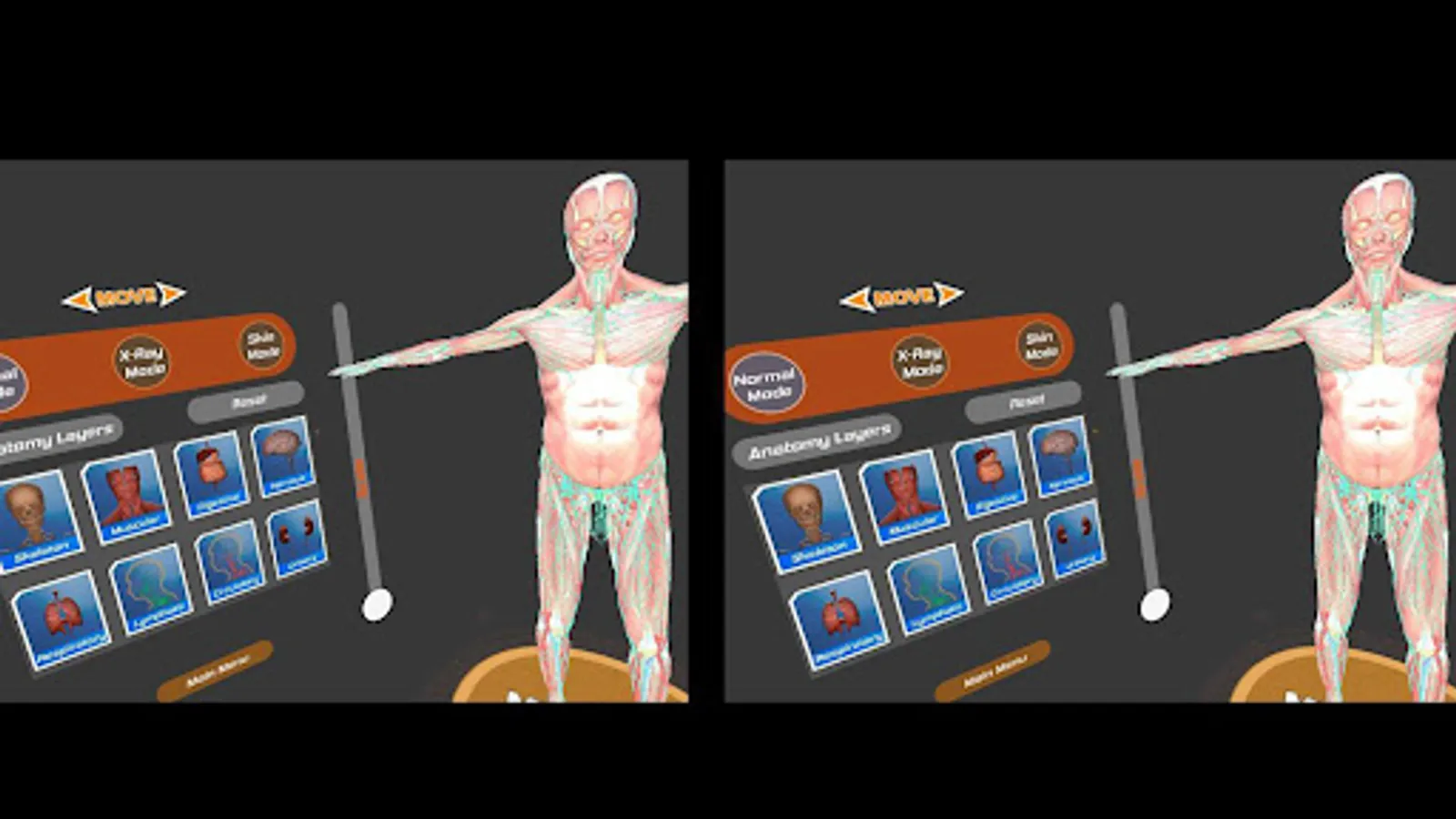 Walk around the Anatomy as if you walk around a physical character in front of you, lean, look up and down, up close, and interact with the internal Body parts.