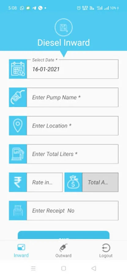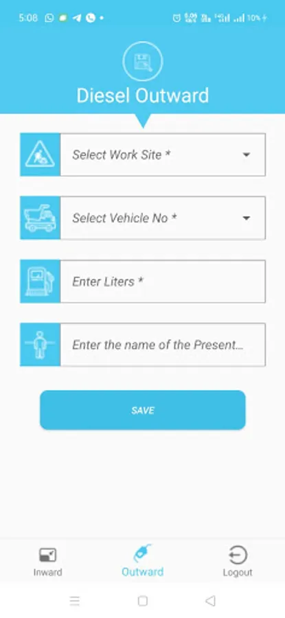 Android Mobile application for Fuel Inward & Outward in Realtime Accountability from the field of Construction Site