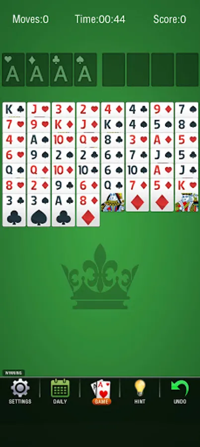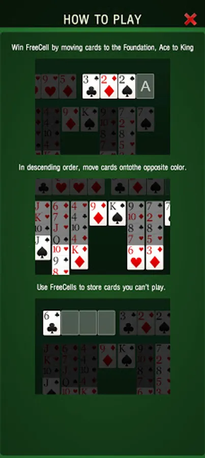 To win FreeCell Solitaire Card Game, you must get all the cards onto the Foundations. The Foundations are ordered by suit and rank, each Foundation has one suit and you must put the cards onto them in the order Ace 2 3 4 5 6 7 8 9 10 Jack Queen King.