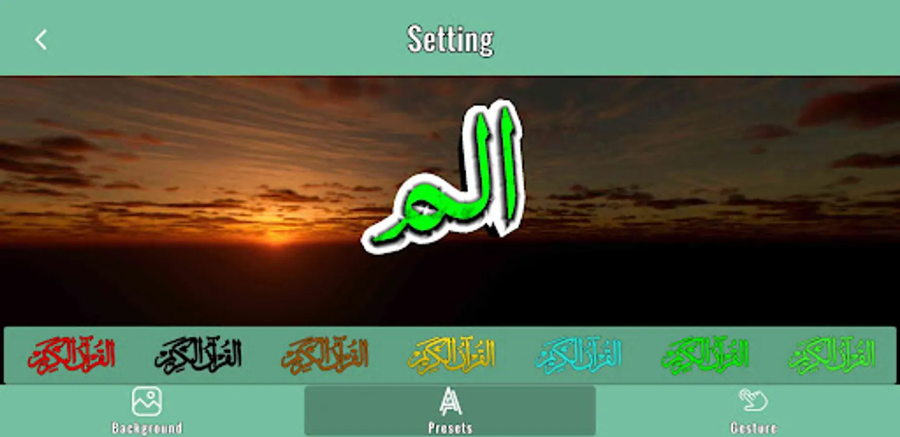 Quran 3d application has 3d text view with 360 degree of view you can zoom in/out Al Quran text, scroll down and rotate on any angle you want with movement of single finger.