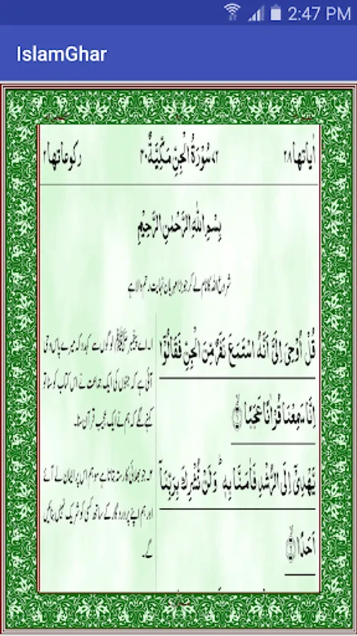 The blessed Chapter, revealed in Mecca, has 28 Verses. The designation of the Chapter reflects that it mainly treats of invisible creatures, the jinn, their belief in the Noble Prophet of the Islamic faith (S), the Holy Qur’an, and Resurrection, and the groups of believers and disbelievers amongst them. The closing Verses concern the knowledge of the unseen unknown to all beings besides Allah Almighty.