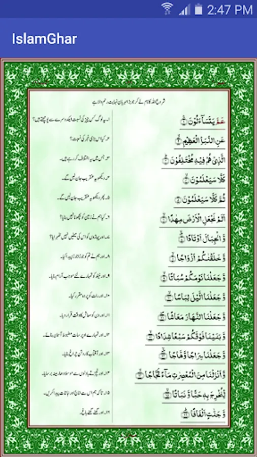 Surah an-Naba (Arabic: سورة النبأ, “The Tidings”, “The Announcement”) is the seventy-eighth chapter (sura) of the Quran with 40 verses. Its forty verses are divided into two equal parts of twenty verses each. The first twenty are filled with the wonders of the worldly creation (the earth, plants, the peace of night shared by loving couples, the mountains, and rain). The latter twenty are filled with the eternal wonders and horrors of the next world with raging sinner (the Arabic root TGY “tageena” is used) being punished starkly opposed with the rewarding of dutiful believers (the Arabic root WQY “mutaqeena” is employed as a poetic parataxis to TGY) in paradise.