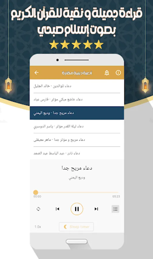 The application of the Noble Qur’an Islam Sobhi allows you to hear all the surahs of the Noble Qur’an in addition to supplications through your mobile phone or device