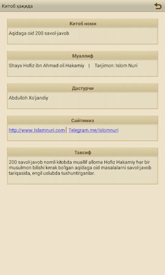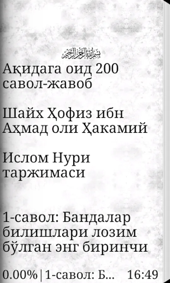 Ushba Kitob musulmon Kishi bilishi zarur Bulgan kitoblardan ҳisoblanadi.