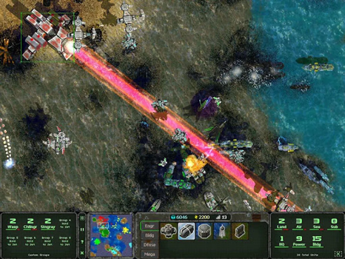 Command a force of thousands of units into strategic warfare in this new RTS game. Fortify your base with turrets, surface to air missile launchers, torpedo launchers, and long range cannons. Next create factories to pump out enormous legions of vehicles, aircraft, and ships to wage war with, you decide what to build! Form groups and transport units to prepare to conquer the enemy. Finally execute your strategic battle plan and enjoy the immense carnage that ensues. Discover and mine unique resources to build gigantic mega units which can turn the tides of war instantly!
