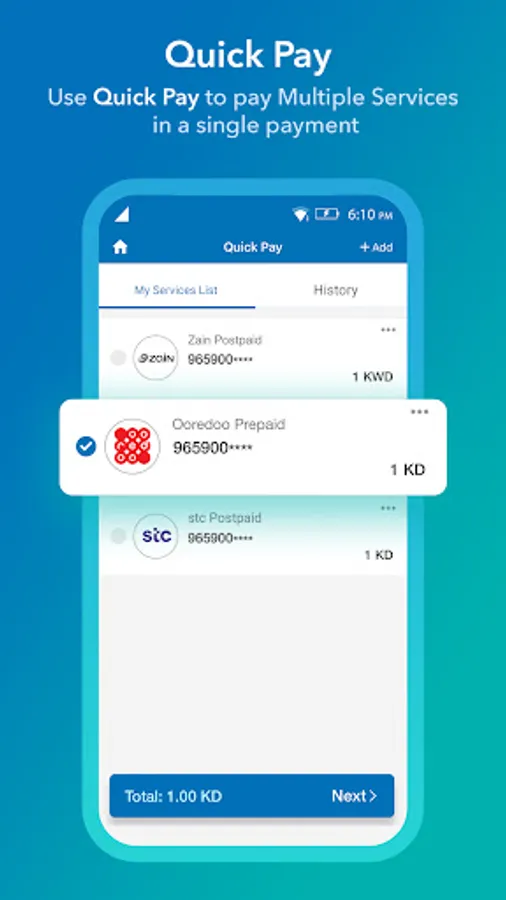 Customize a list of all your payments, bills, and services and pay them all at once with one simple touch!