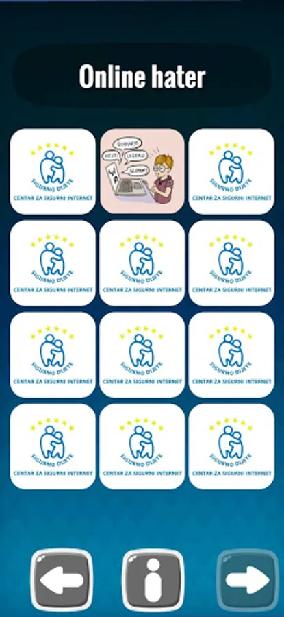 Stay Safe Memoy igra je odličan inovativan alat za djecu i mlade ljude sa kojim vježbaju i jačaju svoju sposobnost pamćenja ali i putem kojeg uče o digitalnim tehnologijama, rizicima sa kojima se susreću tokom boravka u digitalnom okruženju, kao i načinima za prijavljivanje svih vrsta nasilja u digitalnom okruženju odnosno dostupnoj pomoći za žrtve nasilja.