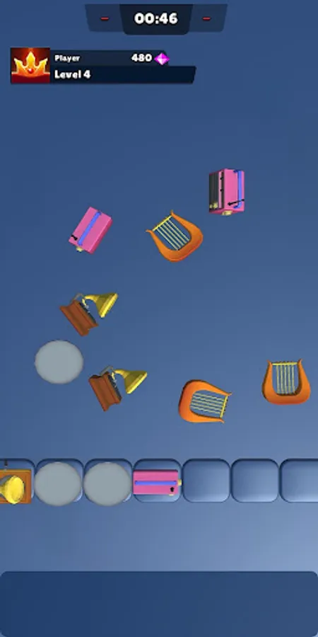 As the game progresses, the number of shapes will increase and change in duration. There are 7 areas where you can place the shapes. When these fields are full or your time runs out, you lose the game.