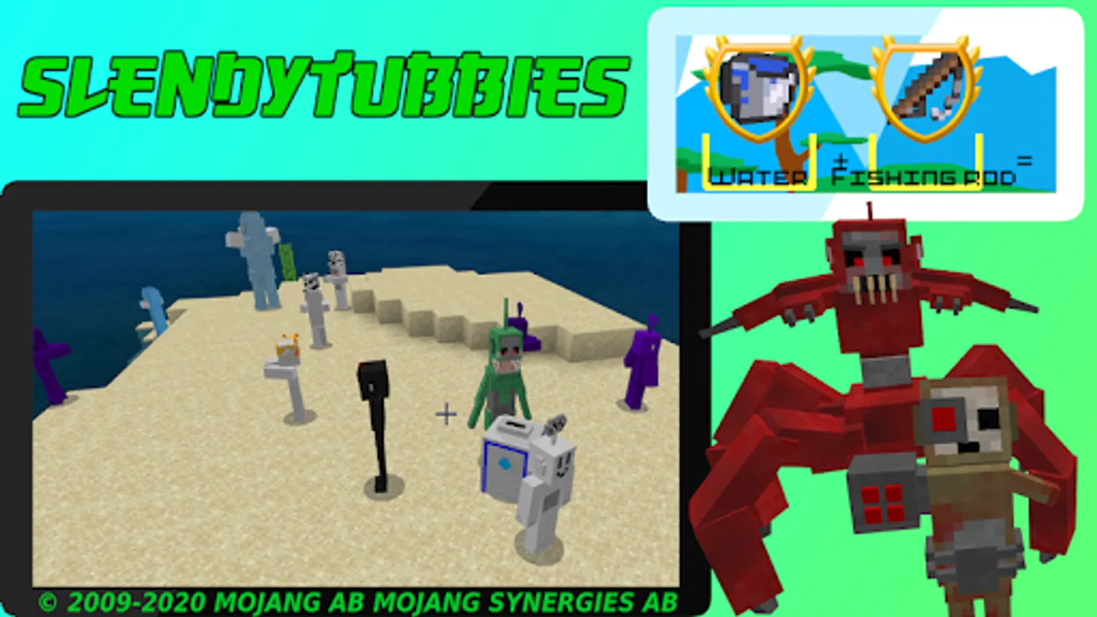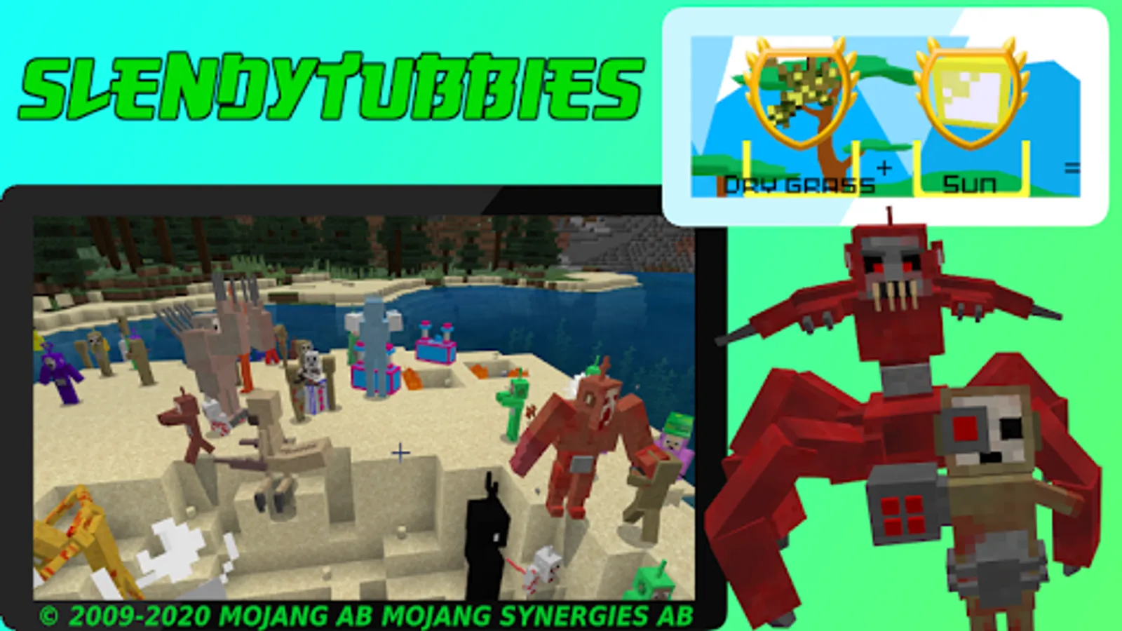 Slendytubbies mod will add both kind and even cute creatures, and aggressive mobs with dangerous weapons that attack all living things in their path, some even with dynamite. But not only good and evil inhabitants of the planet will meet on your way, there will also be dangerous mutant superheroes dozens of times larger than you and possessing more than 4 arms, and some with tentacles. How can you become a friend of these creatures of different appearance and strength, very simply they adore toast (this is a modified cookie) and custard, to create them in creative mode you can easily find them - a custard machine and a toaster. Among the unique inhabitants of various biomes, you can find Teletubbies: tinky vinky, lala, po and dipsi in different guises - cute, scary and mutants, and even with machine guns and chainsaws. There is also a scorpion, a caterpillar droid, a cyborg, a ghost girl, and of course a guardian with a saw. In order not to fall into the hands of terrible animals, just listen and you will hear them from afar.